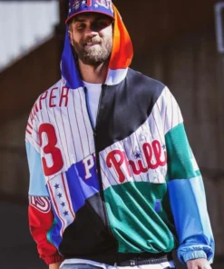 Bryce Harper is the Philadelphia Phillies’ front baseman known for being a fan favorite. He arrived at the opener game against the Atlanta Braves donning a jacket which can easily be termed as the epitome of Philadelphia pride. He showed up sporting a jacket which featured logos of all four of Philadelphia’s teams: Eagles, 76ers, Flyers, and of course, the Phillies. The Bryce Harper Opening Day Jacket shows his devotion and love for the City of Brotherly Love.