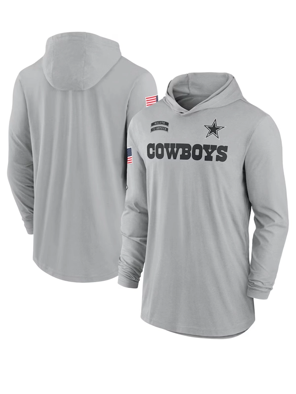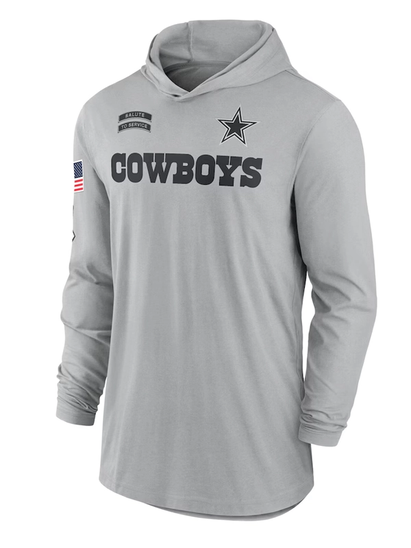 Dallas Cowboys Salute To Service 2024 Long Sleeve Hooded T-Shirt
