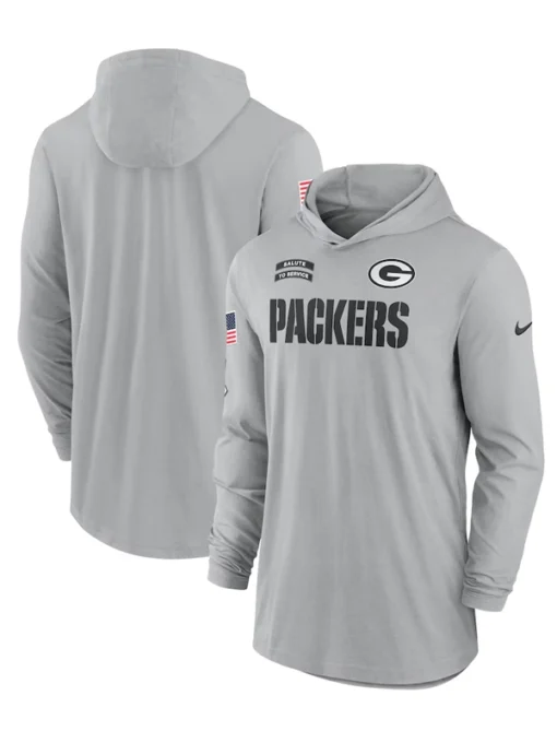 Green Bay Packers 2024 Salute To Service Long Sleeve Hooded T-Shirt