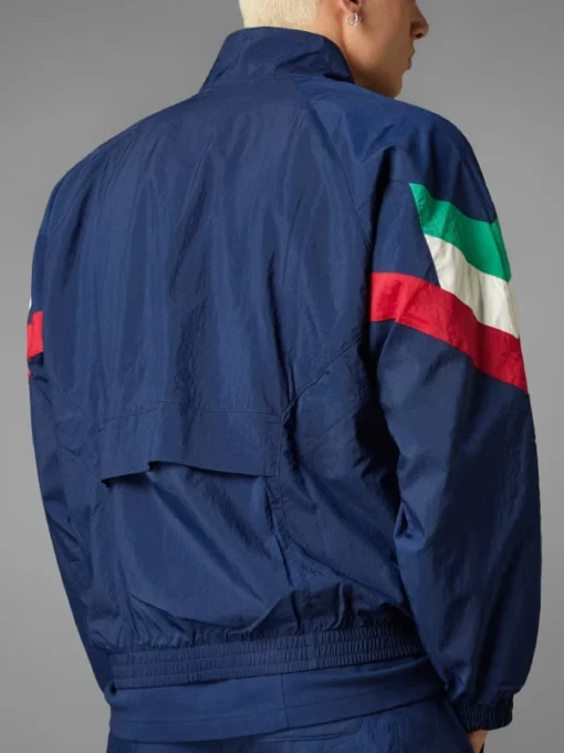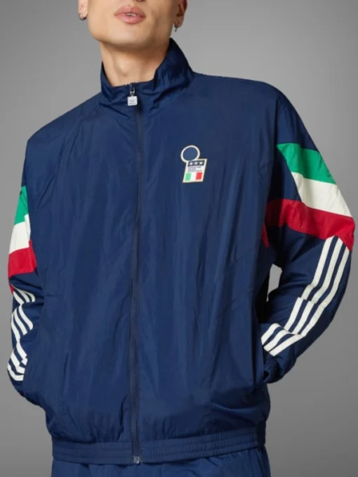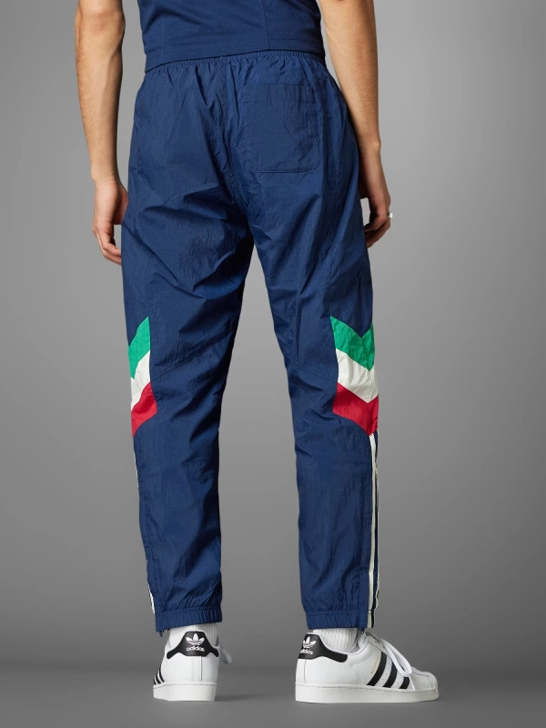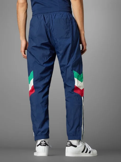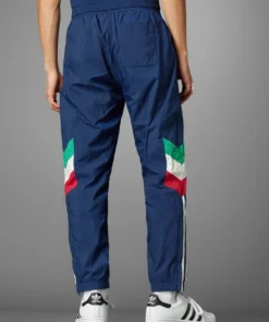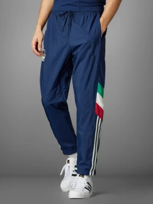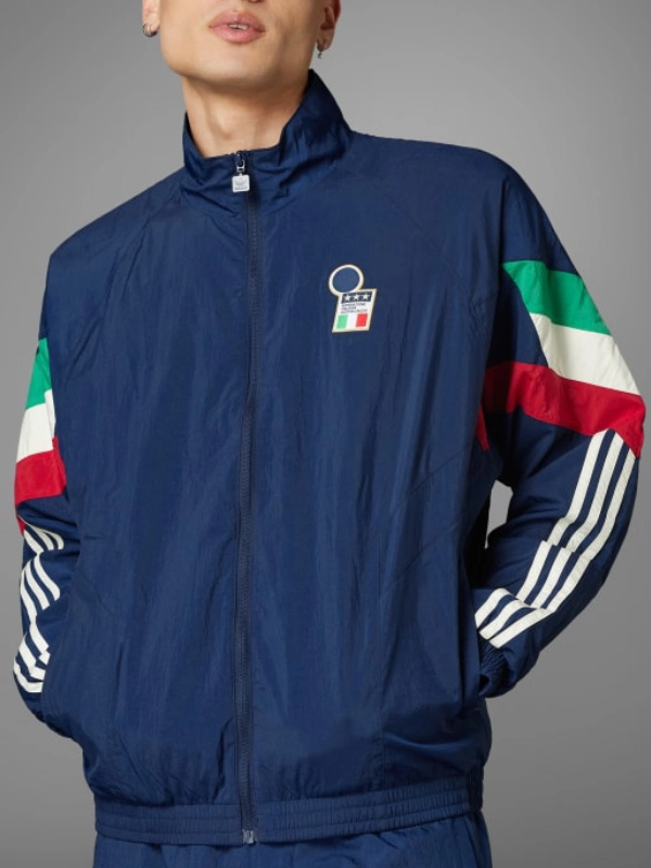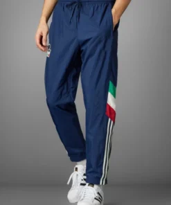 The design itself is a classic. The full-zip front closure allows for easy on-and-off and adjustable ventilation. The stand-up collar adds a touch of edge and sophistication, while the elastic cuffs provide a comfortable stay-put fit. The trousers are made from cotton polyester with an elastic-style hem and two side pockets to go with it. Most importantly, the Italy Originals branding takes center stage. This is displayed with a bold embroidered logo on the chest. The Italian flag colors (green, white, and red) are prominently featured on the sleeves, adding a touch of national pride. With its comfortable design and unmistakable Italian flair, the Italy Originals Track Top For Sale is a perfect way to represent your heritage or simply show off your love for Italian style.