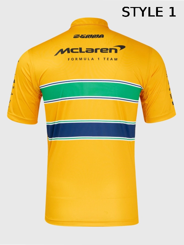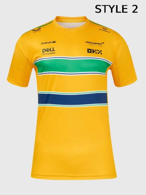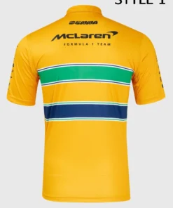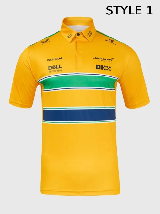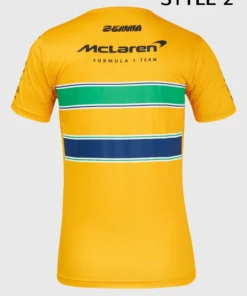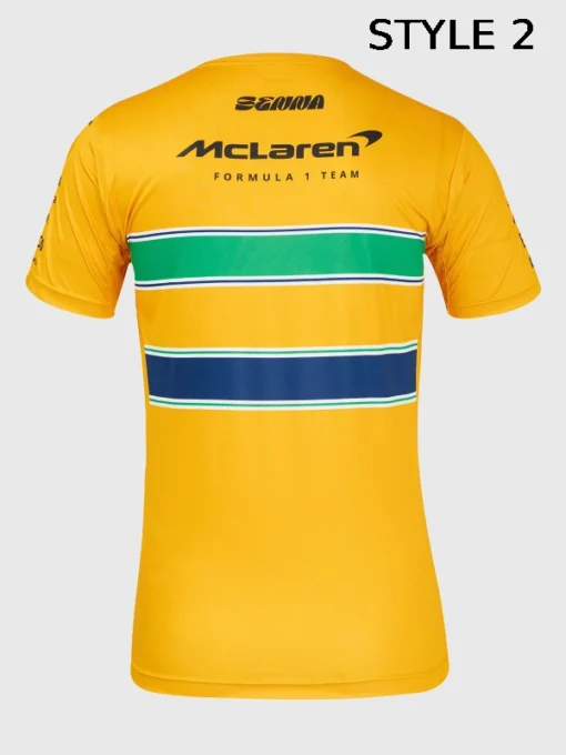 Want to rep McLaren’s victory at the 2024 Monaco Grand Prix? Look no further than the official McLaren Senna Shirt! This special edition shirt is inspired by the legendary Ayrton Senna, a true champion of Monaco. The design features the bold yellow, blue, and green stripes of Senna’s iconic helmet, just like the shirts worn by McLaren drivers Lando Norris and Oscar Piastri during the race!