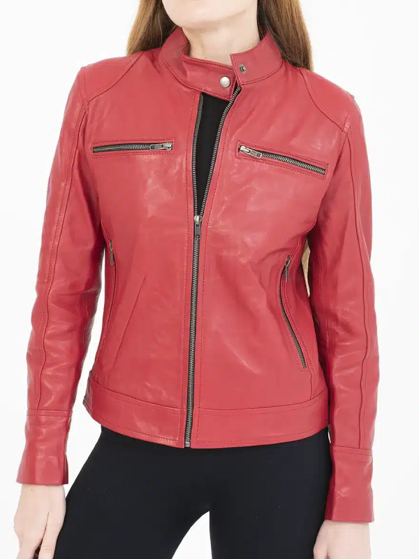 Women’s Red Cafe Racer Leather Jacket